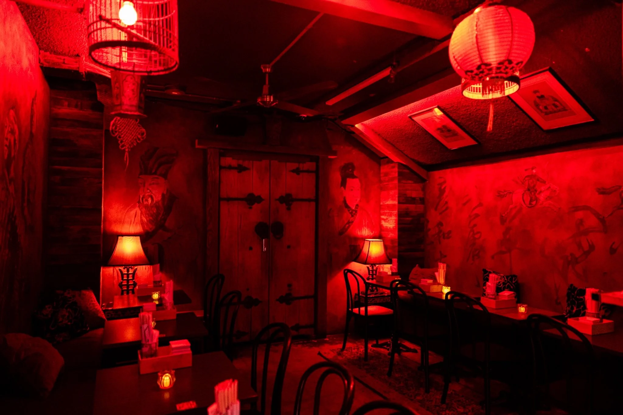 A hidden late-night basement bar serving dumplings, cocktails, Japanese whisky and chaotic Chinatown energy.